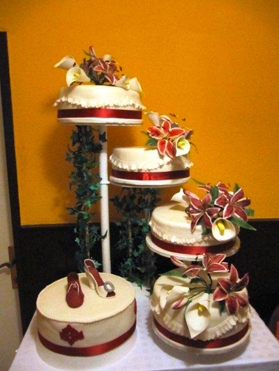 dies ist die Hochzeitstorte unserer Tochter Sandra, die ich ohne die vielen guten Tipps nicht so toll hinbekommen hätte.